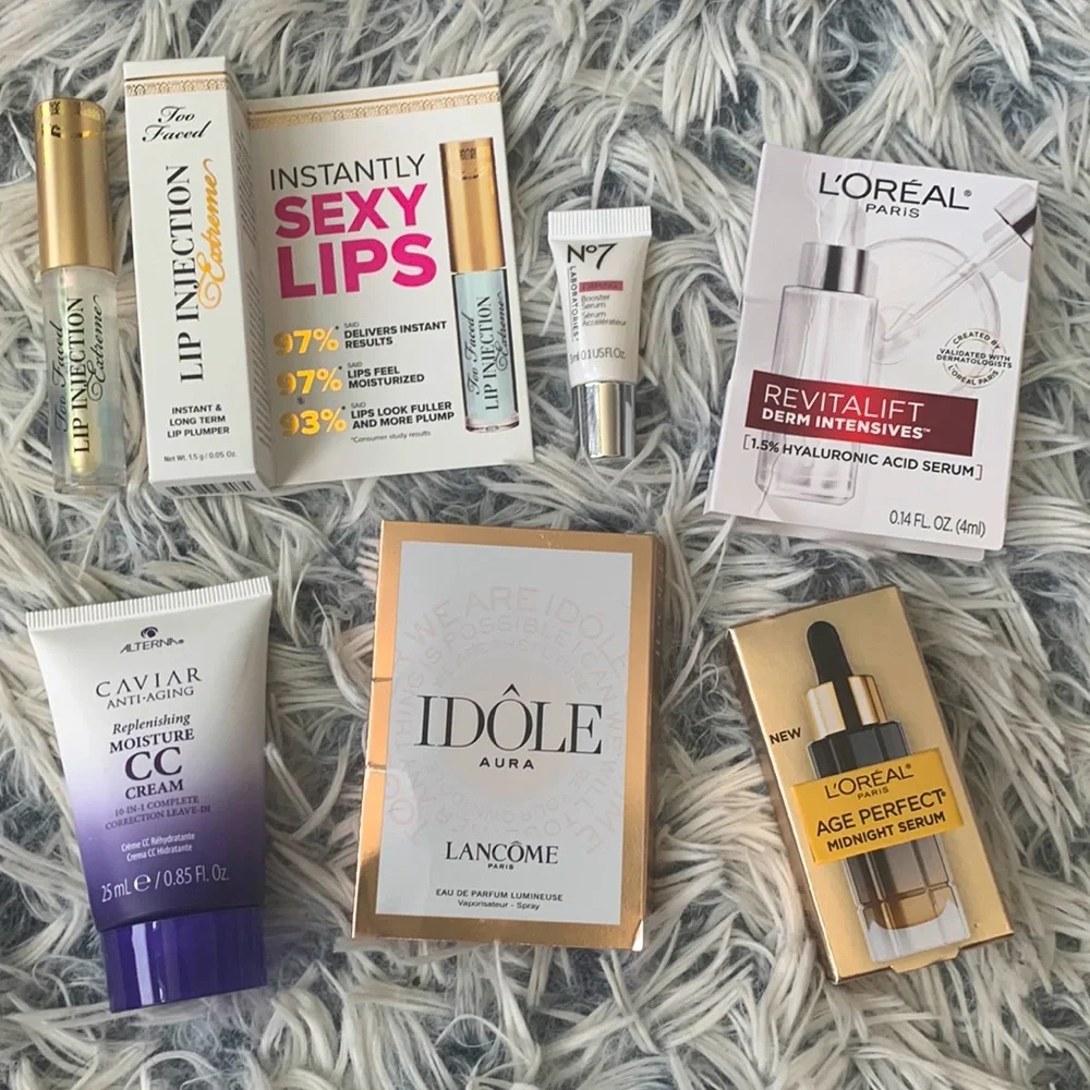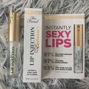 Believe the TOO FACED Lip Injection is a deluxe sample size. See pics for sizes, etc.