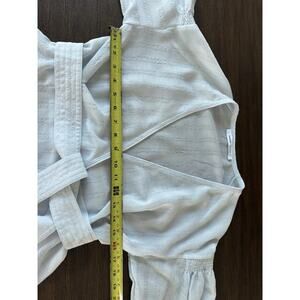 Elegant wrap blouse with a tie waist. Features long sleeves and a soft texture. Perfect for a chic look.