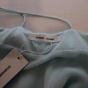 SAMSOE SAMSOE Linea Maxi Halter Dress Iced Aqua Size Med NWT Textured High Neck