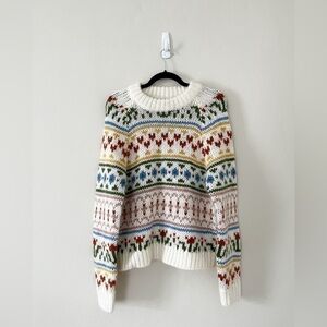 The Samsoe Samsoe Simones Crew Neck Sweater is a regular fitting crew neck jumper with raglan sleeves. You'll love the rib trimmed cuffs and hem and striped jacquard artwork pattern. Wear yours with trousers and slides this fall.
