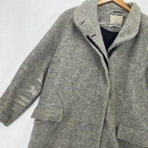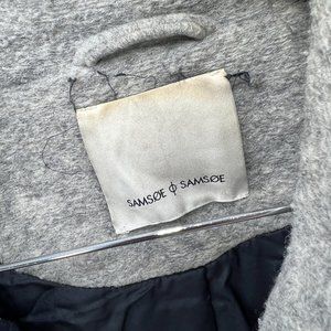 SAMSOE & SAMSOE Women's Designer Gray Front Button Long Pea Coat Oversized M