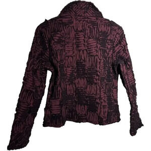 SAMUEL DONG Maroon Burgundy Swirl Rosette Zip Front Jacket Size Medium