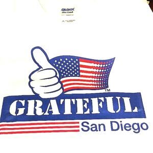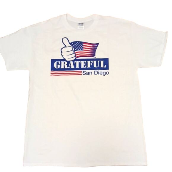 SAN DIEGO T-Shirt Mens Sz L WHITE Crewneck American Flag GRATEFUL Patriotic Flag