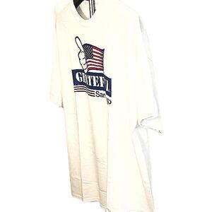 SAN DIEGO T-Shirt Mens Sz L WHITE Crewneck American Flag GRATEFUL Patriotic Flag Casual USA America American Red White Blue Positive Motivation Happy Fun Business Work Leisure Streetwear Preppy Outdoors Beachy Beach Coastal Nautical T shirt Vote Rally Convention