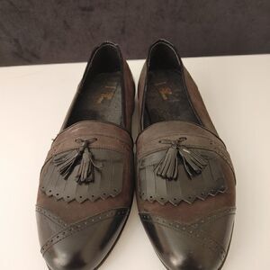 SAN REMO CHARCOAL SUEDE WITH GRAY LEATHER TRIM LOAFER WITH TASSELLS.