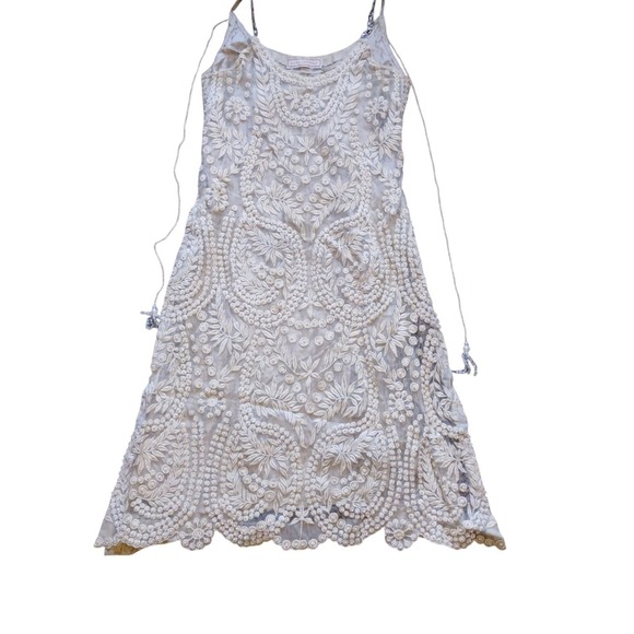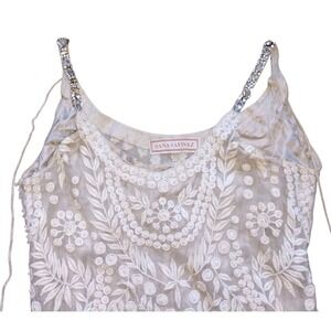 SANA SAFINAZ Cream Embroidered Dress with Pearls | Silk-Lined Size – Small