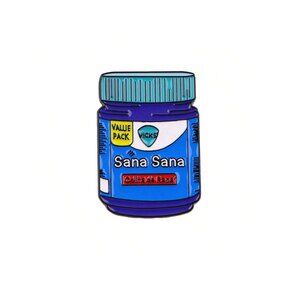 Add a touch of nostalgia to your accessories with this SANA SANA Vicks Spanish Jar enamel lapel pin. Perfect for backpacks or jackets, this unique pin is a charming conversation starter and a must-have for collectors or anyone who loves quirky, vintage-inspired designs.
