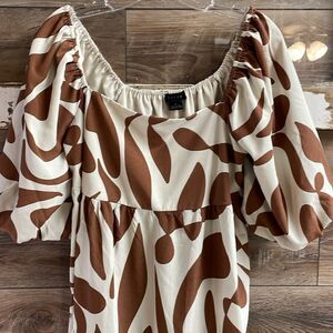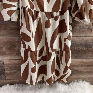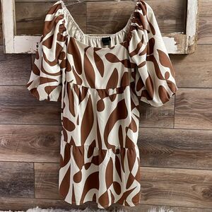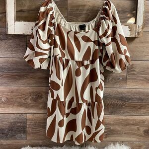 SANCTUARY Animal print Weekender Puff Sleeves Above Knee Dress Brown Ivory SZ S