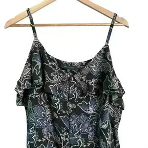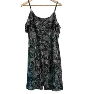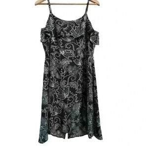 SANCTUARY Anthropolgie Dress Black Floral Sz Medium Adjustable Ruffle Sleeveless