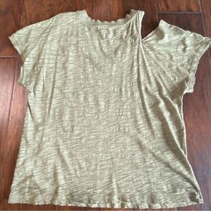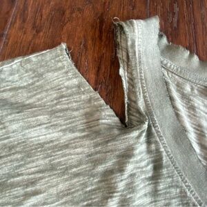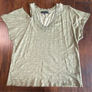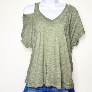 SANCTUARY Army Green Slash Neck Cold Shoulder Top Shirt