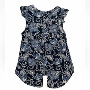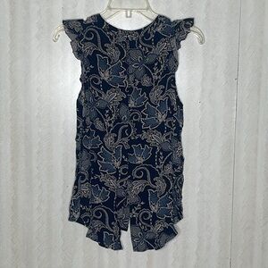 ❤️ SANCTUARY Black Blue Floral Ruffled Sleeveless Top Blouse Paisley Sleeve