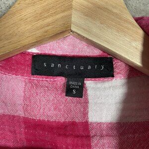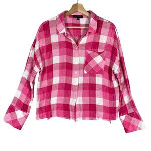 SANCTUARY Boyfriend Shirt Women’s S Pink Buffalo Plaid Cotton Gauze Button Up