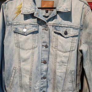 NWOT denim jacket with adorable embroidery details on the front and embroidered and sequin design on the back. No rips, stains, or tears. Never worn. Size medium. The bottom pockets are not functional, but the top button pockets are. Intentionally distressed and frayed all over and at the bottom. Very cool vintage Lisa Frank vibes. If you have any questions, feel free to ask.