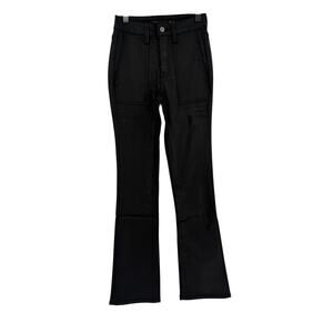 Slightly flared pants are all the rage right now and these are no exception. Pair these with your favorite tee for a more casual look, or with your favorite button-up blouse for an evening out. Experience the stylish flair of the Birdy Semi High Rise Flare Pants by Sanctuary, crafted in a rich black hue for ultimate versatility.