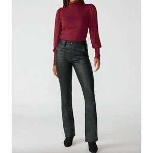 Slightly flared pants are all the rage right now and these are no exception. Pair these with your favorite tee for a more casual look, or with your favorite button-up blouse for an evening out. Experience the stylish flair of the Birdy Semi High Rise Flare Pants by Sanctuary, crafted in a rich black hue for ultimate versatility.