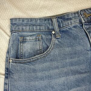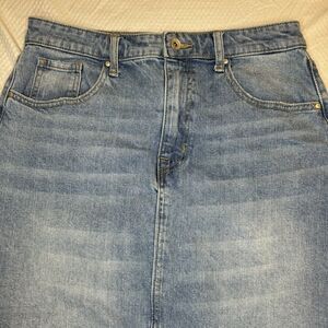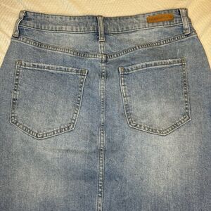 SANCTUARY Light Blue High Rise Front Slit Midi Denim Jean Skirt Raw Hem