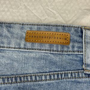 SANCTUARY Light Blue High Rise Front Slit Midi Denim Jean Skirt Raw Hem Size 28
