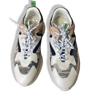 SANCTUARY Men’s “Groove” Camo-Printed Leather Sneakers, Lace up, Size 7