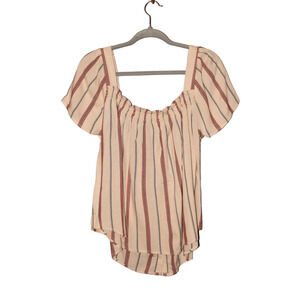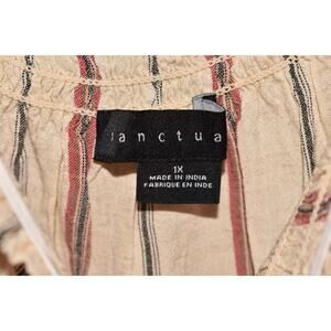 SANCTUARY NEW $79 Smocked Square Neck Cream Striped Button Down Top 1X