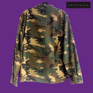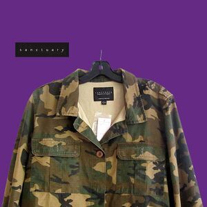 Sanctuary |NEW| Skater RIP STOP CAMO Backtail Jacket M. A stylish camo print updates a military-inspired jacket styled with chic epaulets and handy chest pockets. It is excellent quality by Sanctuary. See pictures for all details and the Table Chart to size this jacket. Specific measurements are provided upon request.