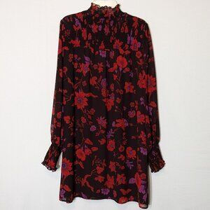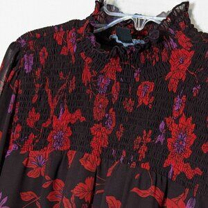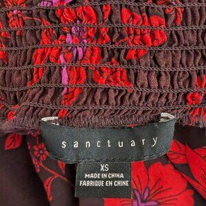 SANCTUARY Red/Black Lined Chiffon Long Sleeve Smocked Straight Dress; Size XS