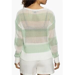 SANCTUARY Sweater Size L NEW Cotton Open Knit Mint Stripe Sweater