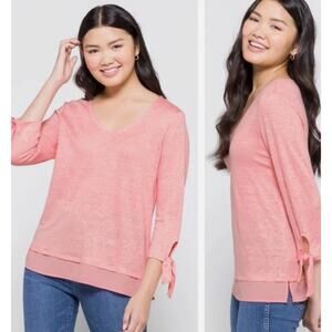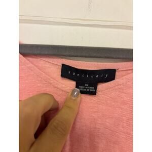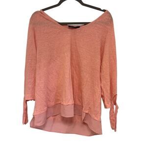 SANCTUARY Sylvie Tie Sleeve Tee Linen Pink V Neck Top Size XL