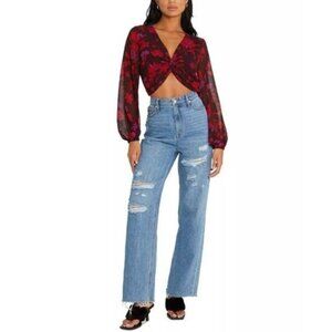 SANCTUARY Twisted Floral V-Neck Satin Cropped Top - NWT