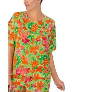 Sanctuary's satin pajamas feature a bold floral print that blooms throughout the short-sleeve top and boxer shorts.