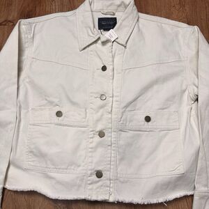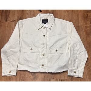 SANCTUARY Women’s Ivory Pocket Frayed Hem Button-down Trucker Flora Jacket Large