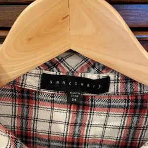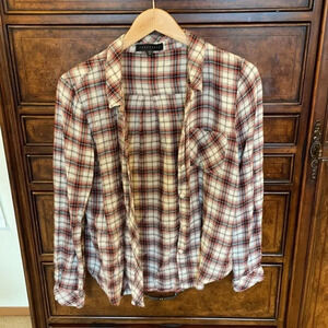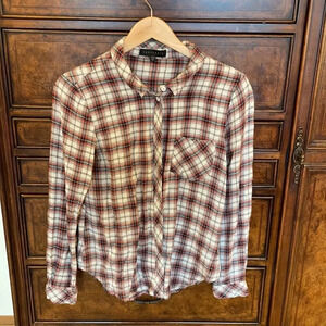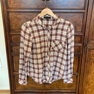 Sanctuary brown and white and red stripped button down long sleeve shirt. This shirt is super cute and in good condition