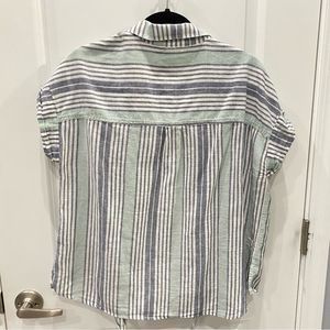 🌟🛍️ SANCTUARY linen cotton blend striped button down tie blouse Large L EUC