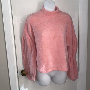 SANCTUARY Pink Eyelash Knot Popover Mock neck Sweater-S