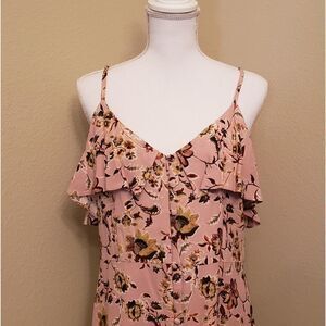 Live your life dressed fashionably in Sanctuary clothing. Button-down dress crafted in a lightweight polyester fabrication. Fluttery ruffles fashion the neckline. V-neckline. Adjustable spaghetti straps. Straight hemline. 100% polyester.