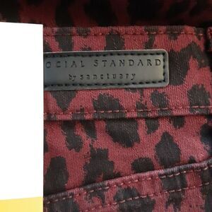 SANCTUARY Skinny Jeans Social Standard Midrise Burgundy Leopard size 10