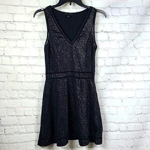 SANCTUARY Sparkle Midnight Metallic V-Neck Party Dress Small Black Formal Mini