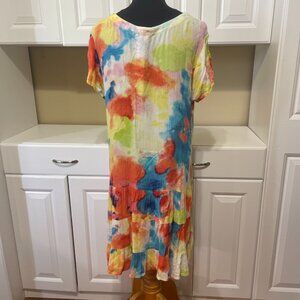 SAND & SPIRIT WATERCOLOR SHORT SLEEVE DRESS WOMEN'S SIZE L