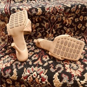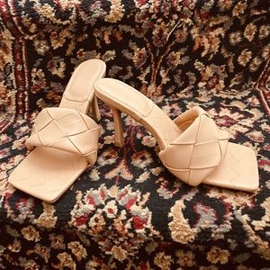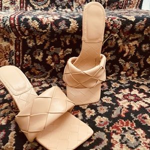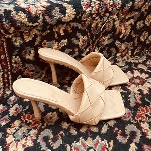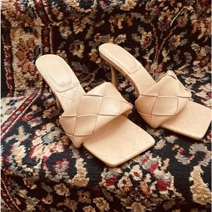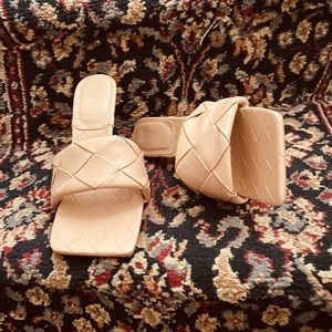 Gorgeous slip on 3 inch size 7 tan sandals!