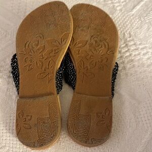 BLACK AND GOLD SANDALS CUTE WITH JEANS OR DRESS, WORE THEM ONLY A FEW TIMES