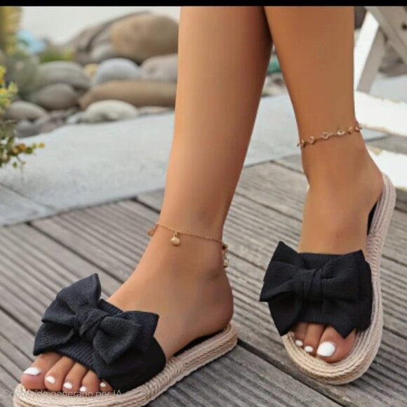 CASUAL SANDALS WITH A BOW-SHAPED DESIGN WITH OPEN TOES AND A FLAT SOLE IN BLACK SIZE 6.5