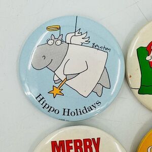 SANDRA BOYNTON Button Pin Lot! Hippo Holidays Furry Christmas HO HO Hum Merry