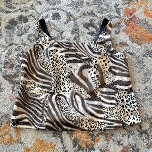 SANDRA DARREN Animal Print Satin Tank Top Size 16 Luxe Casual Eclectic Indie Alt