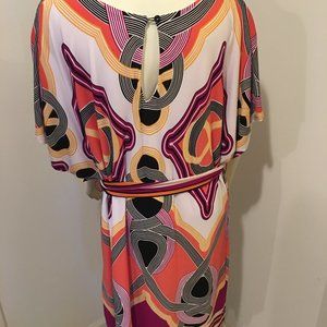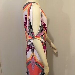 SANDRA DARREN Coral Multi Scarf Print Cold Shoulder Knee Length Dress 16