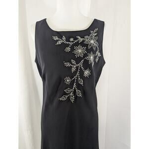 From Sandra Darren comes this elegant, feminine shift style tank dress, in luxurious black poly to the ankles! Embroidered and beaded in a cream floral at the left bodice, just the right touch! Back zipper, Size XL, worn once! Excellent! Superb EUC Condition! **ABSOLUTELY GUARANTEED CONDITION: EUC MINTY-EXCELLENT TO LIKE-NEW, by Lily @HauteClub!***