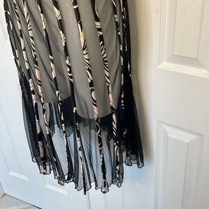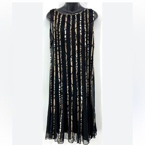 SANDRA DARREN STRIPED BLACK AND BEIGE SHEER MESH SLEEVELESS SHIFT DRESS SIZE 14