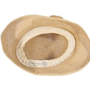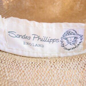Chic Sandra Phillipps collectible burlap cloche, with a wide band and large bow, perfect for attending summer functions. Breathable burlap fabric. Adjustable inner tie fits most sizes. Grosgrain-covered wire rim for reshaping. Bow can be worn front, side or back as you see fit. A vintage collectible.