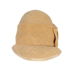 SANDRA PHILLIPPS London Vintage Burlap Bow Cloche Summer Hat O/S