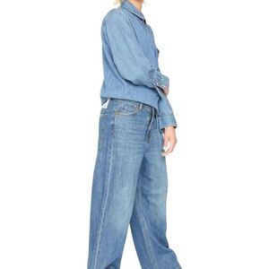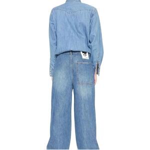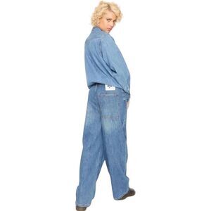 Looking for a new pair of statement jeans? Look no further than the Sandrine Rose x Free People wide-leg high-rise distressed jeans. With their trendy Y2K, grunge, or 90s vibe, these pants are perfect for anyone looking to add a little edge to their wardrobe. The medium wash with light whiskering and fading, along with some strategic distressing, give these jeans the perfect lived-in look. Plus, with their classic zipper and button closure and four-pocket design, they're easy to style and transition from season to season.