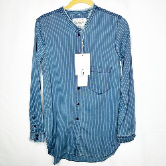 SANDRINE ROSE x Free People Mandarin Denim Shirt Washed Striped NWT in XS