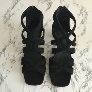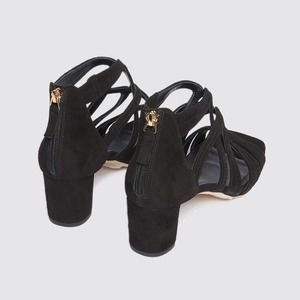 SANDRO Aliza Suede Sandals Black Leather Heels Shoes